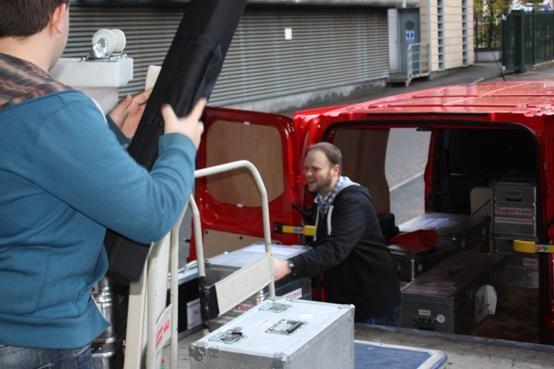Once we’ve sorted out what we need, we load all the props into the Outreach van. Lifting the boxes can be tiring work, but I’ve been getting better at it every day. Sometimes fitting all the boxes into the van can be like a giant game of Tetris, but the oldies on the team make it look easy.