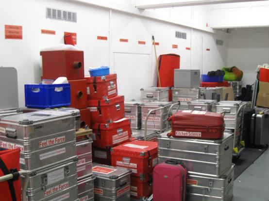 On Mondays, the Outreach team plan their visits for the week. As well as figuring out how to get to the different schools, we also need to figure out what props we need to bring for our shows. Every Monday, the team goes to the Outreach storeroom to organise the show props for the week. We perform 22 different shows and workshops, so there are a lot of boxes in the storeroom.