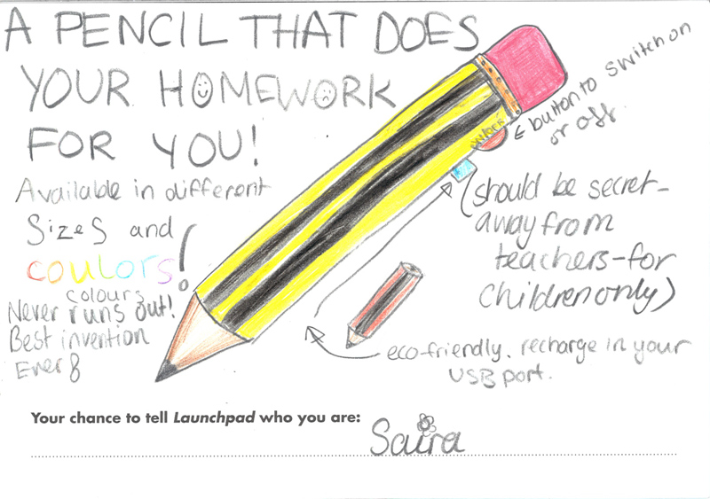 A pencil that does your homework for you, clouds that rain chocolate and a levitating chair – just a few of the ingenious inventions that have been dreamt up by visitors to our Launchpad gallery.