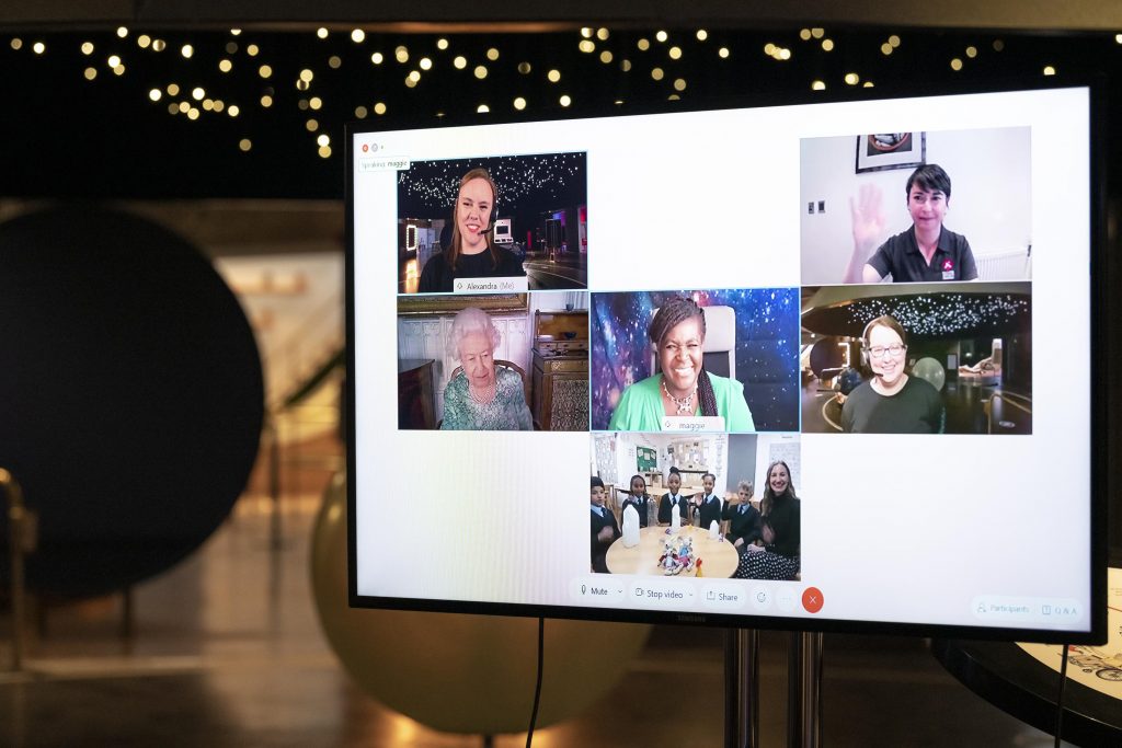Later in the call, The Queen heard from our Explainers. Alexandra White shared an update on how the Science Museum had been engaging young people in science throughout the pandemic. Then Fiona showcased how we’d adapted our experiments to deliver them online and detailed the activities carried out with the school children earlier that day and handed over to them for a demonstration.