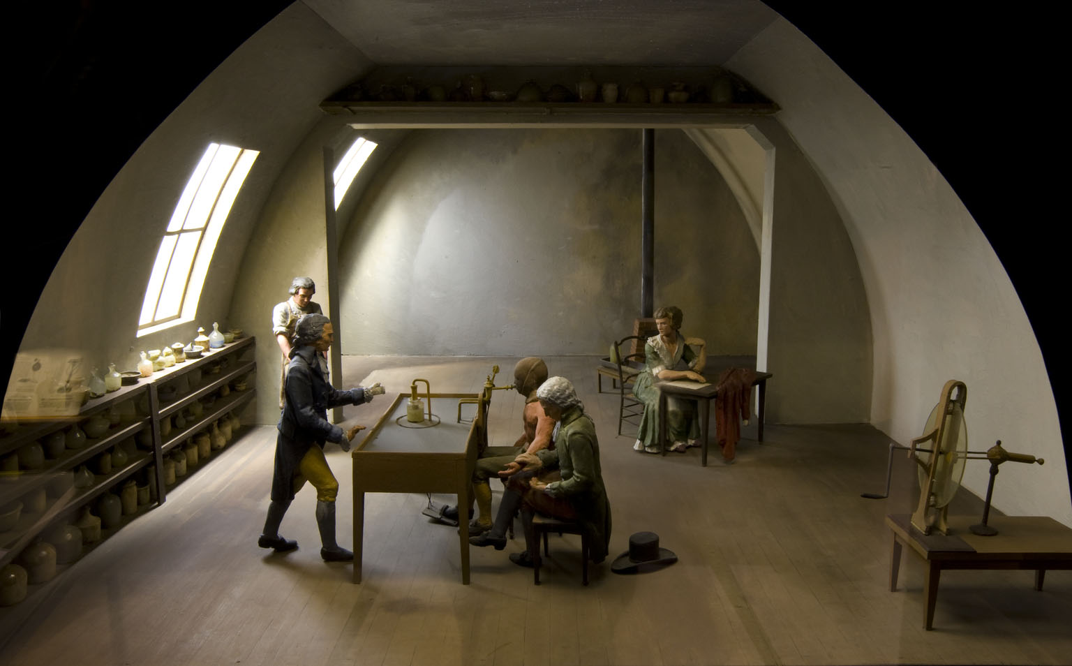 The illustration (and diorama) depicts one of a series of experiments on the chemistry and physiology of respiration carried out by the Lavoisiers and their collaborators.