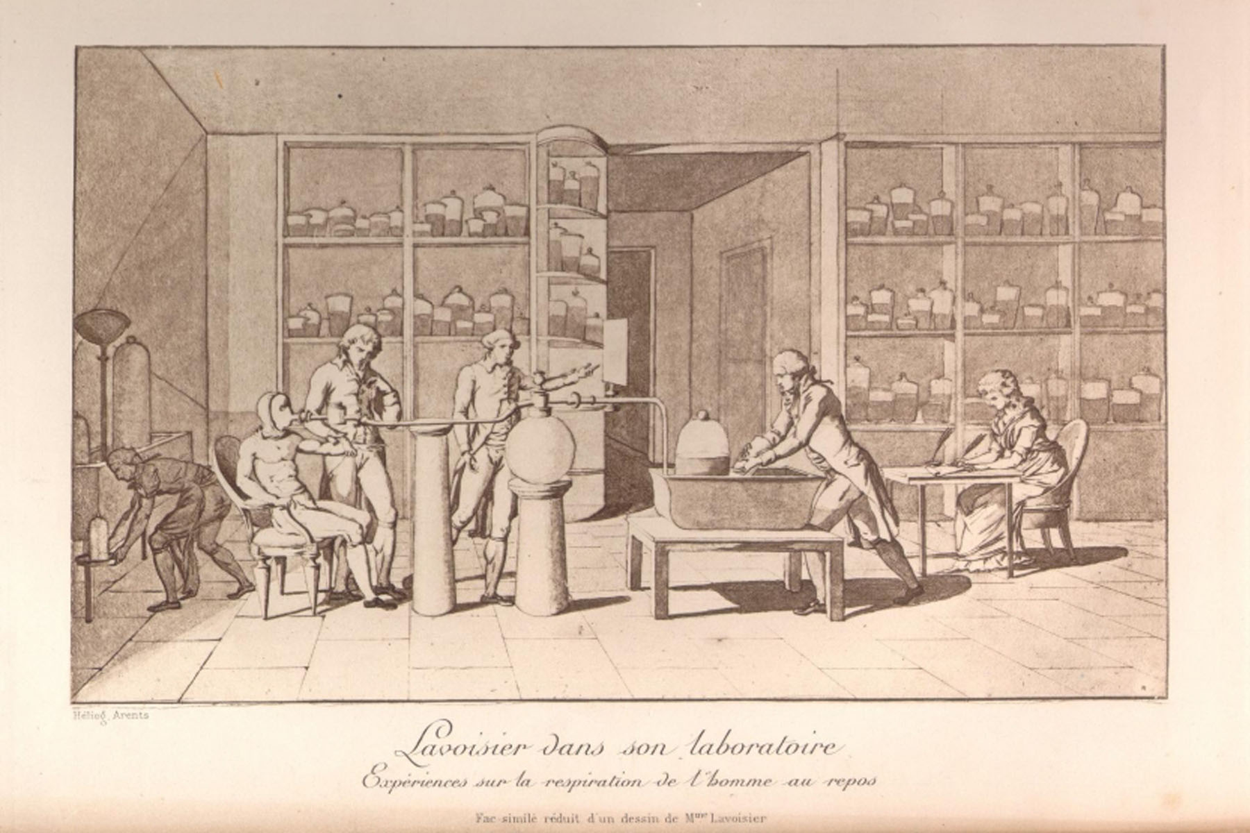 These respiration experiments were carried out at the Lavoisiers’ home laboratory at the Paris Arsenal. The Lavoisiers worked under a strict regime: 6.00 – 9.00 and 19.00 – 21.00 weekdays; and morning and lunch in the laboratory Saturdays, with theoretical discussions in the afternoon.