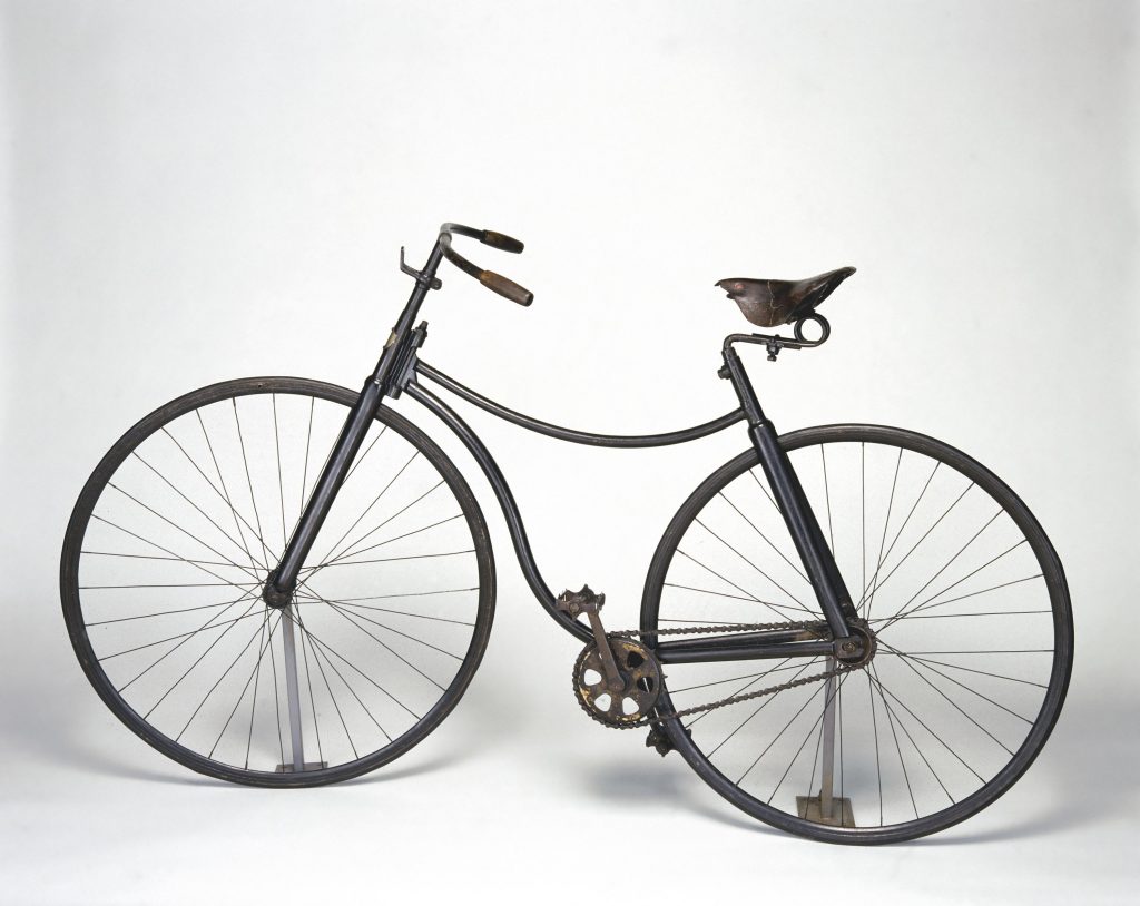 In the late 1870s bicycle manufacturers were exploring new, safer designs that would allow the rider to be closer to the ground. The British inventor John Kemp Starley (nephew of James Starley) designed the first successful “safety” bicycle in 1885. Known as the “Rover”, it had all the basic features of standard modern bicycles, including chain drive, which meant that both wheels could be the same size. With the introduction of the safety bicycle, cycling became enormously popular. For the first time, women and the working classes could enjoy private travel experiences previously restricted to the wealthy.