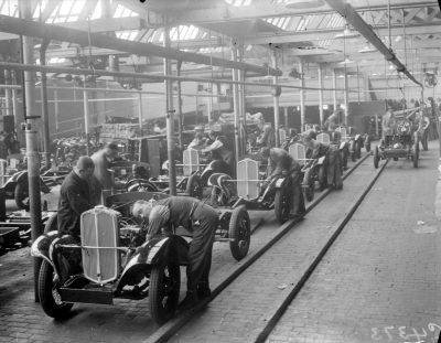 In 1896, inspired by the recent German invention of the motor car, Henry Lawson founded the Daimler Motor Company and opened a factory in Coventry to become the first mass car manufacturer in Britain. The company’s success attracted other motor firms to the city who also benefitted from the component and machine-tool industries which had grown out of the bicycle trade.