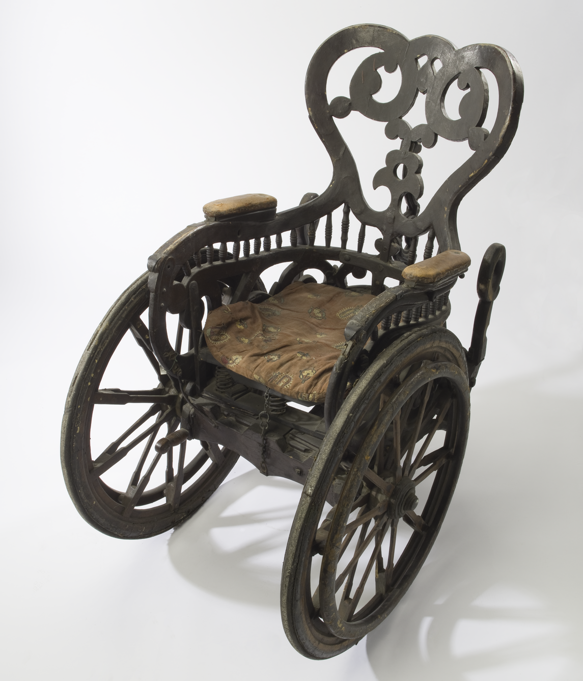 Patents show that throughout the nineteenth century many improvements were made to the wheelchair to promote comfort, manoeuvrability and independence, including the invention of rear push wheels and push-rims.