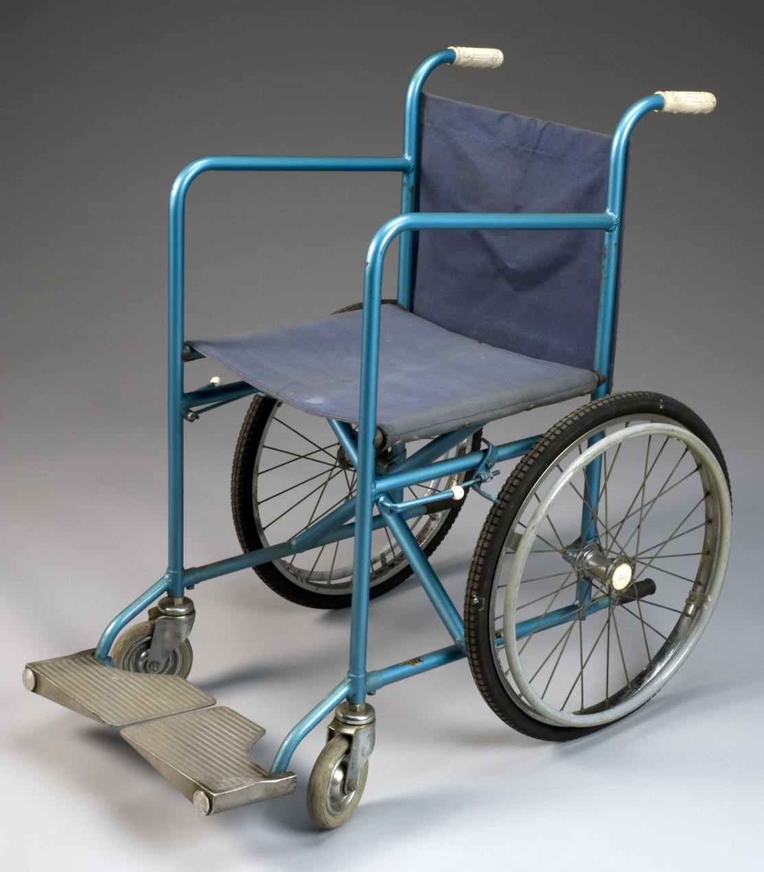 The Science Museum Group Collection has a ‘Model 8’ version of this folding wheelchair built in the 1950s. Used in hospitals, nursing homes and private institutions, the Model 8 could be manoeuvred either by the patient via the metal rims attached to each wheel or by an assistant pushing the chair.