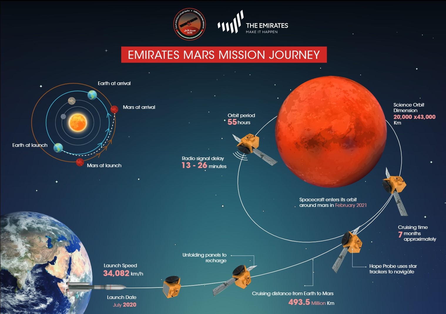 The main scientific objective for Hope is to find out more about Mars’ climate and how it has changed over billions of years; Mars used to be wet, like Earth, so where did the water go?