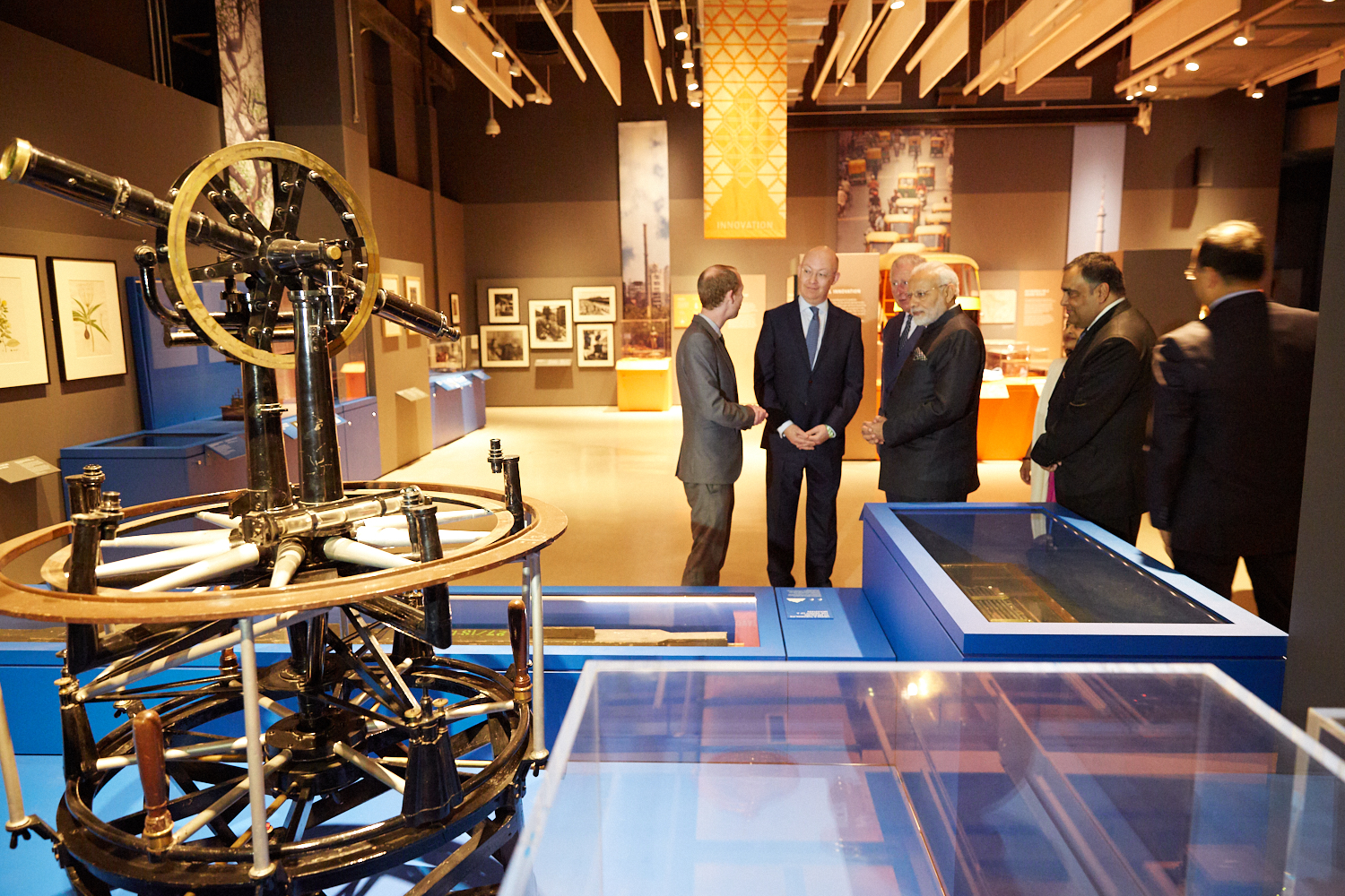 Prime Minister Modi, head of state of the world’s largest democracy, toured Illuminating India: 5000 Years of Science and Innovation with Science Museum Director Ian Blatchford and Curator Matt Kimberley and viewed the significant objects on display which tell the story of India’s long and fruitful history in science and technology.