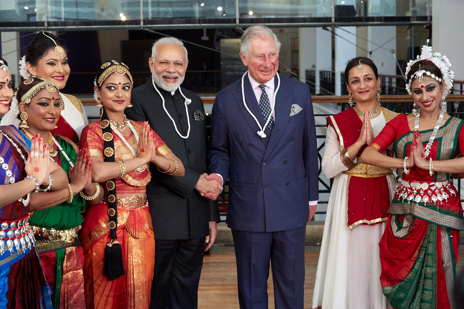 International media watched on as Prince Charles and Prime Minister Modi were treated to a performance by Akademi South Asian dance group, saw the Premier League Trophy and the Cricket World Cup, and unveiled a plaque to inaugurate a new centre of excellence and research in traditional Indian medicine.