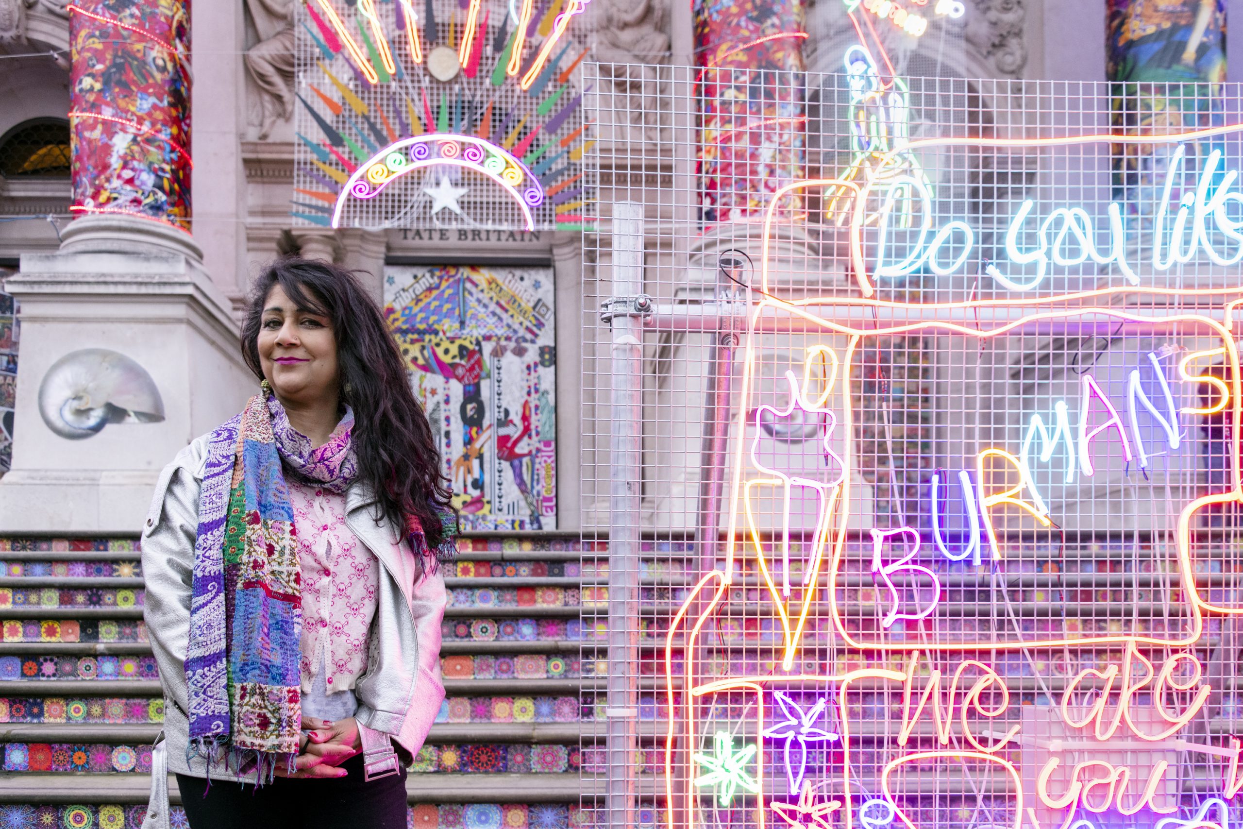 British artist Chila Kumari Singh Burman has added light to the darkness. Since November, the north bank of the Thames has been illuminated by her winter commission for Tate Britain ‘Remembering a brave new world’. Also conceived to celebrate Diwali, her vibrant work has been a much-needed moment of light and joy in a lockdown month, but also argues for the importance of Indian traditions within British identity.