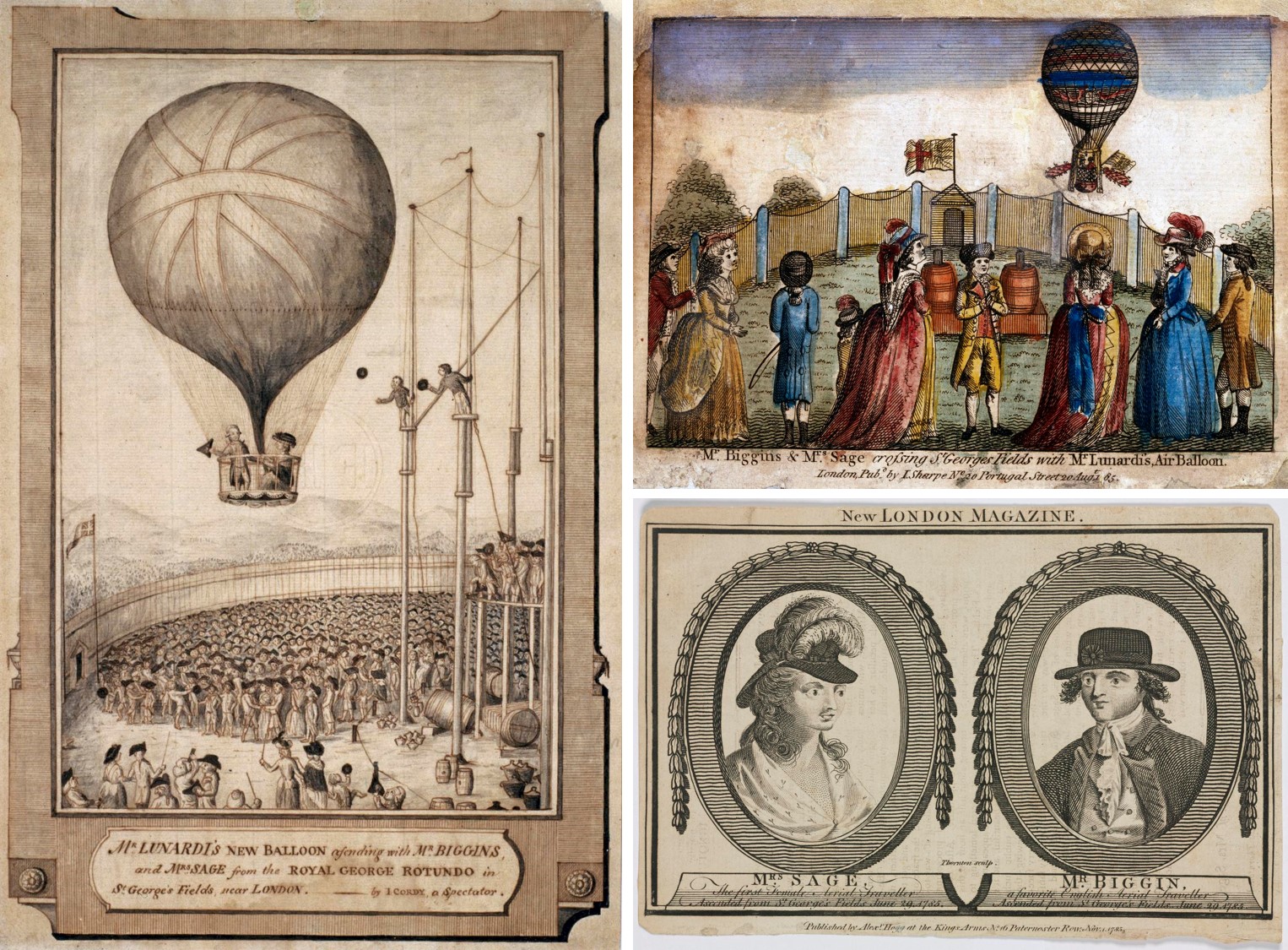 Sage and Lunardi were also to be joined by one Colonel Hastings, another unidentified lady, and Lunardi’s assistant George Biggin armed not only with meteorological instruments but also a ‘manly and becoming fortitude’.