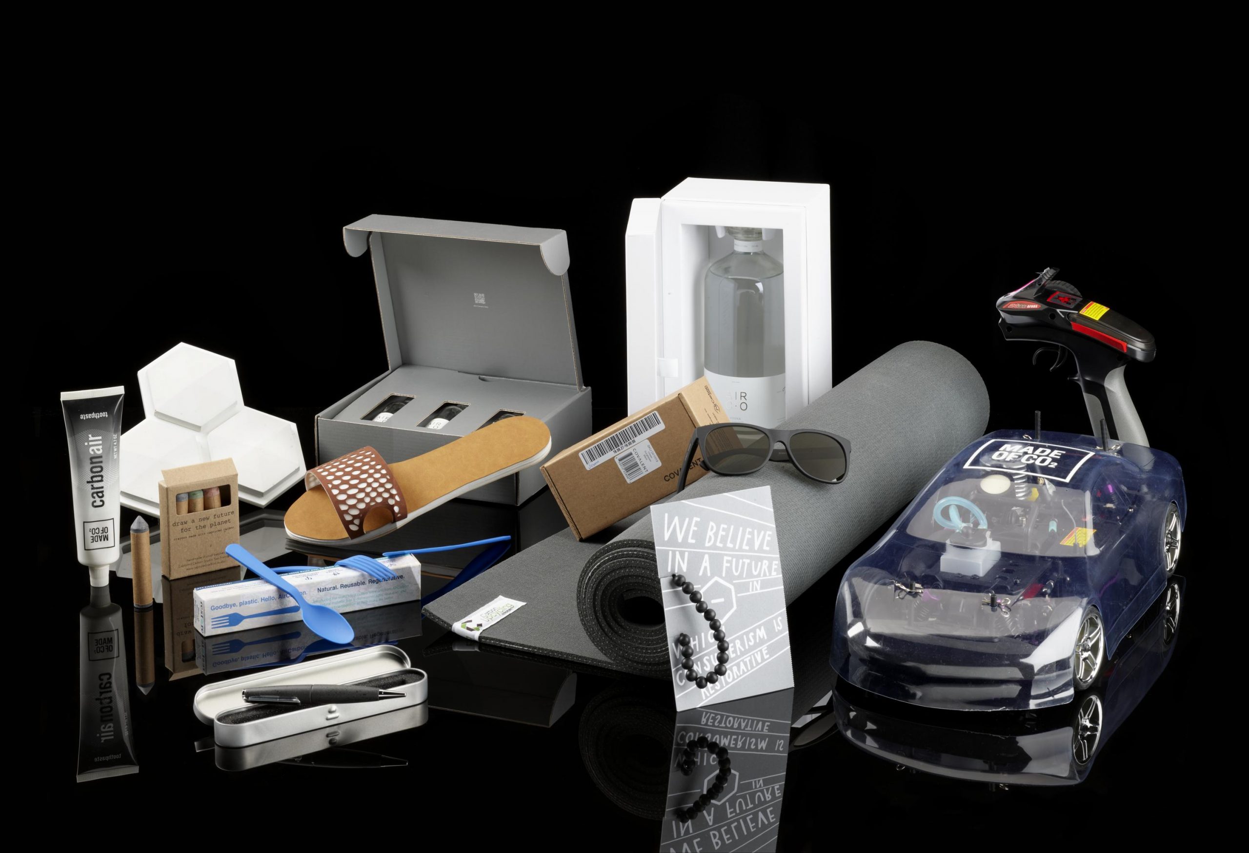 In the final section of the exhibition, visitors will get to see building materials like concrete and aggregates and consumer products including sunglasses, toothpaste and yoga mats, all made with captured carbon.