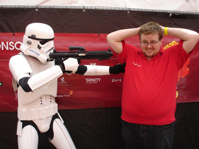 An Imperial Stormtrooper stands outside the Science Museum stall – science fiction or science fact? The Science Museum at West End Live!