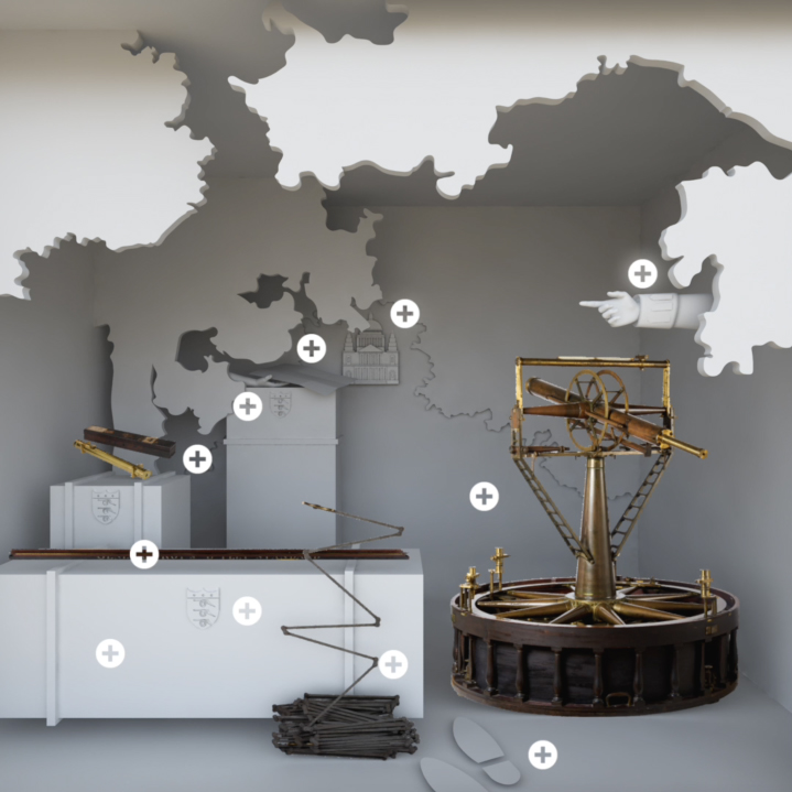 The digital display of the theodolite’s diorama-type scene contains a link to a 3D photograph of it.