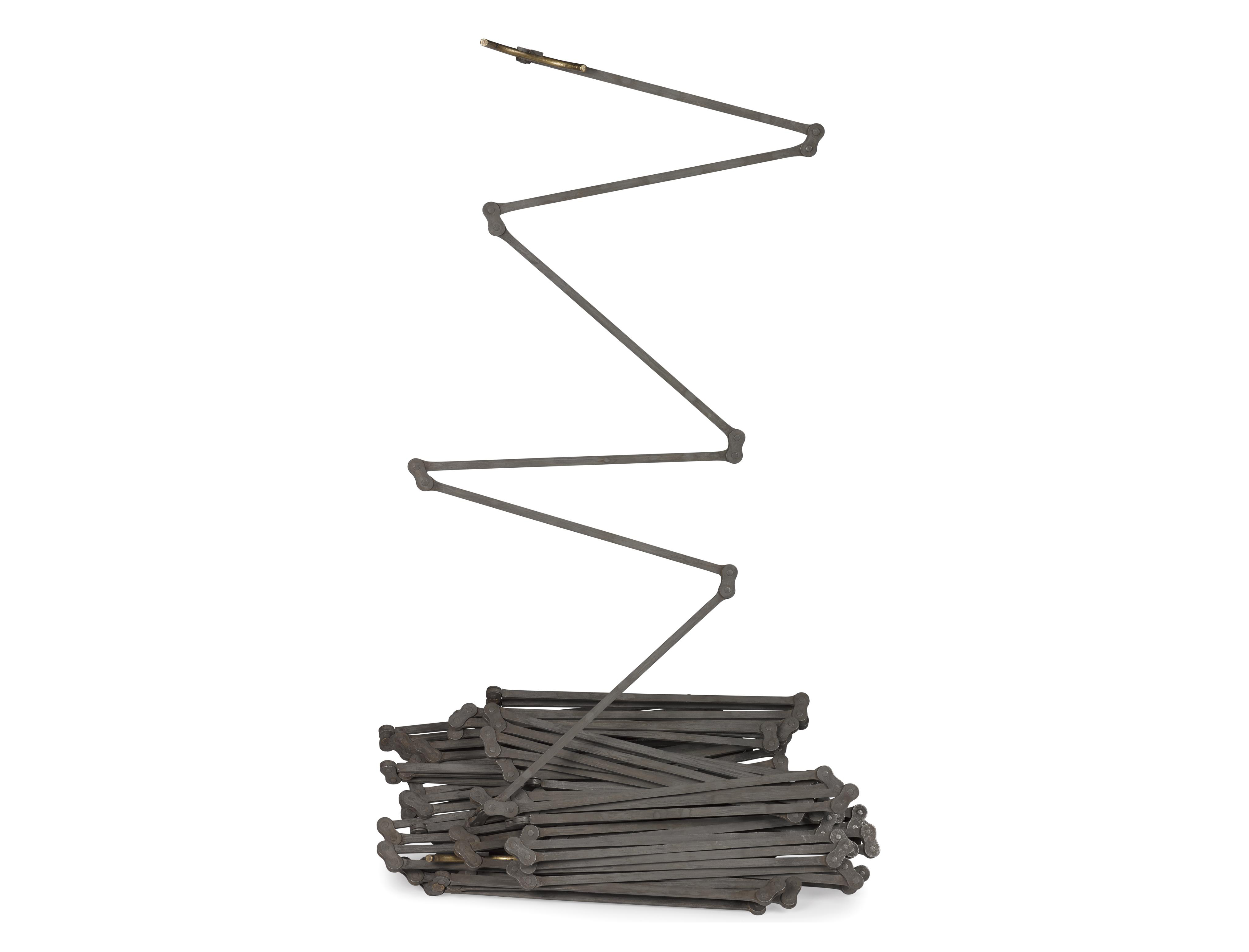 Next to the Theodolite, there’s a 100-link chain, a measuring tool used by surveyors. “The curators weren’t sure how this was going to be displayed,” he says.