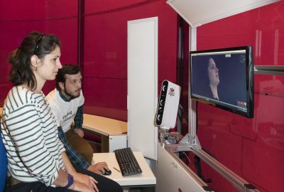 Stefanos and I now have a new project at the Science Museum, where we are developing our original research further by collecting 3D data of facial expressions. Once visitors have filled out information covering their ethnic background they are invited to make facial expressions based on emotions like fear, anger, happiness etc. While they’re doing this our 3dMD cameras capture their expressions allowing us to build up a full digital map of how their faces move and express emotion.
