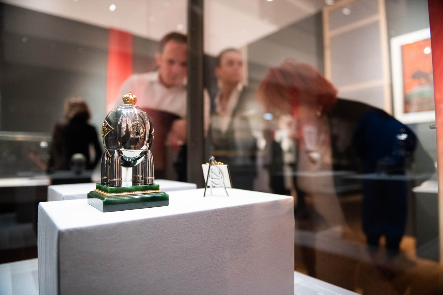 There are also two Imperial Fabergé Easter Eggs. ‘The Moscow Kremlin Museums have lent us the last Fabergé Egg presented by the Tsar to his wife: the Steel Easter Egg of 1916,’ said Blatchford. ‘A very bold and shocking military design, and with its miniature painting of father and son consulting maps at army headquarters.’