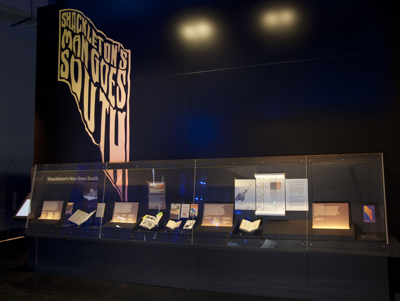 Beneath this large wall graphic you will find a touch screen where you can email yourself a free ebook of Shackleton’s Man Goes South, and there is a special display showing some of the scientific and literary inspirations behind the novel. (Listen to an audio extract. Download the novel here until 24 July.)
