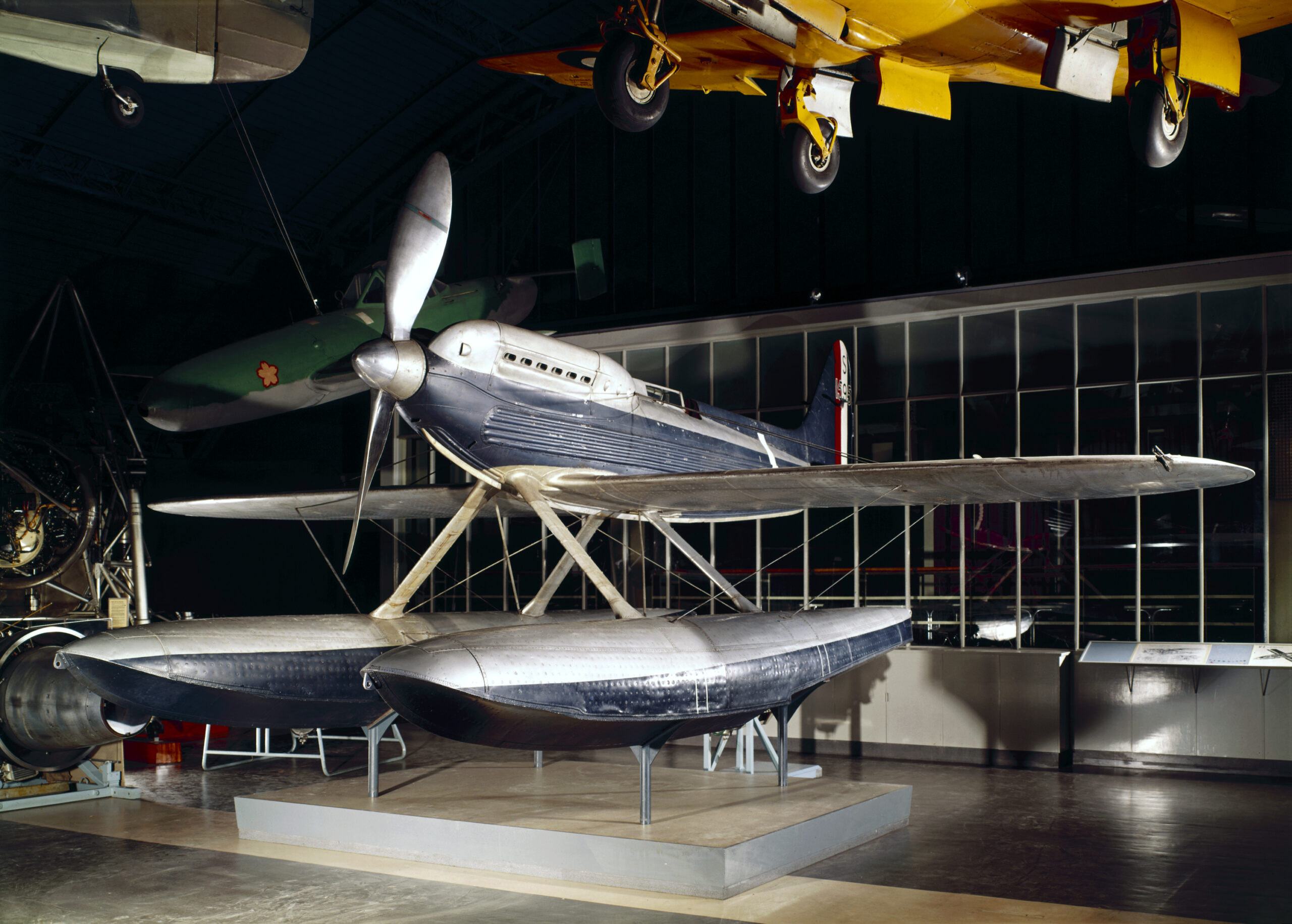 Around the same time, manufacturers and pilots began to compete to build the fastest seaplane in a race series called the ‘Schneider Trophy’. In 1931, the UK won the challenge with the Supermarine Rolls Royce Seaplane S.6. B. S.1595z, powered by a Rolls-Royce 1900 hp engine (and also on display in the Flight gallery).
