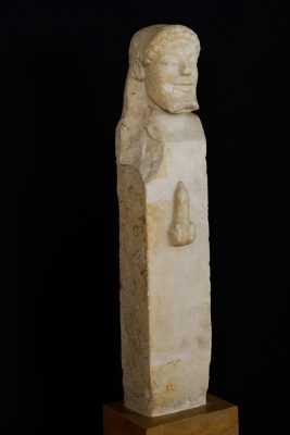 In order to impart the image of this “great cosmic ruler” to the Hermes statue, a copy of a bronze original of 360-350 BC, white Parian marble was used by a Peloponnesian sculptor, conforming to the rules of the Polykleteian sculpture tradition.