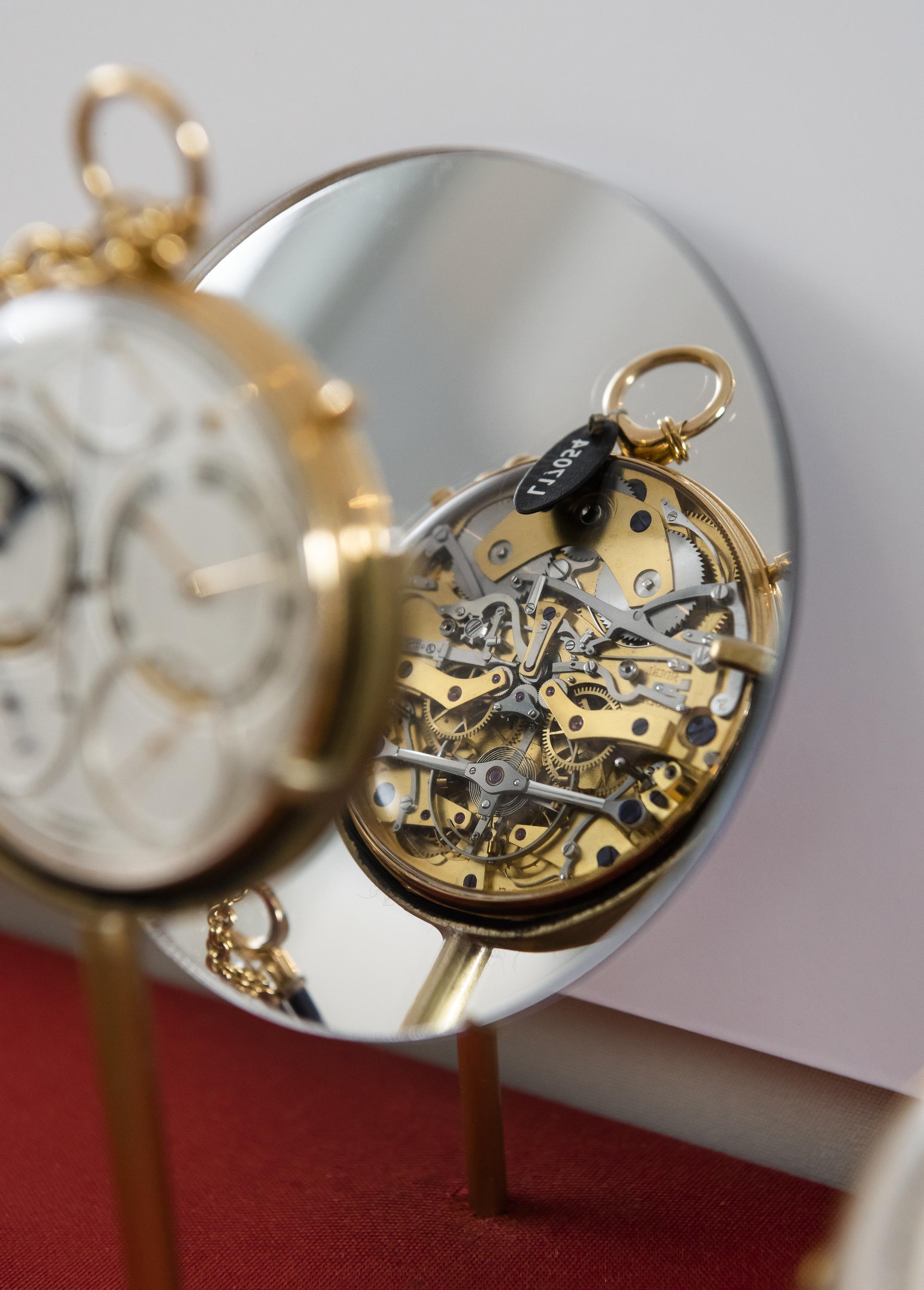 The watch also shows the phase of the moon, an annular calendar, the equation of time and features an ingenious stopwatch which functions with either solar or sidereal time via the flick of a lever.