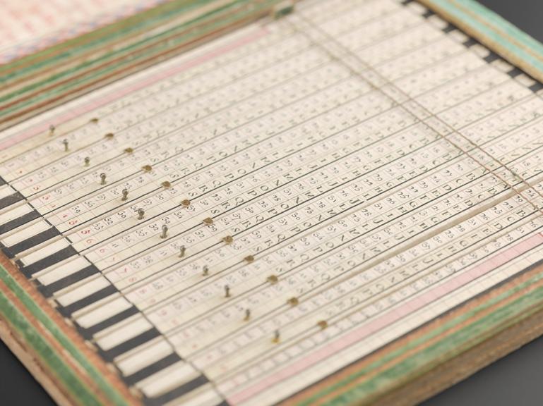 The first stop on our codebreaking and communications tour is the stunning Mathematics: The Winton Gallery on level 2 of the museum. In this gallery, you will find an unassuming book that is called ‘Polygraphic Papers’ that was a coder/decoder used in the late 18th century.