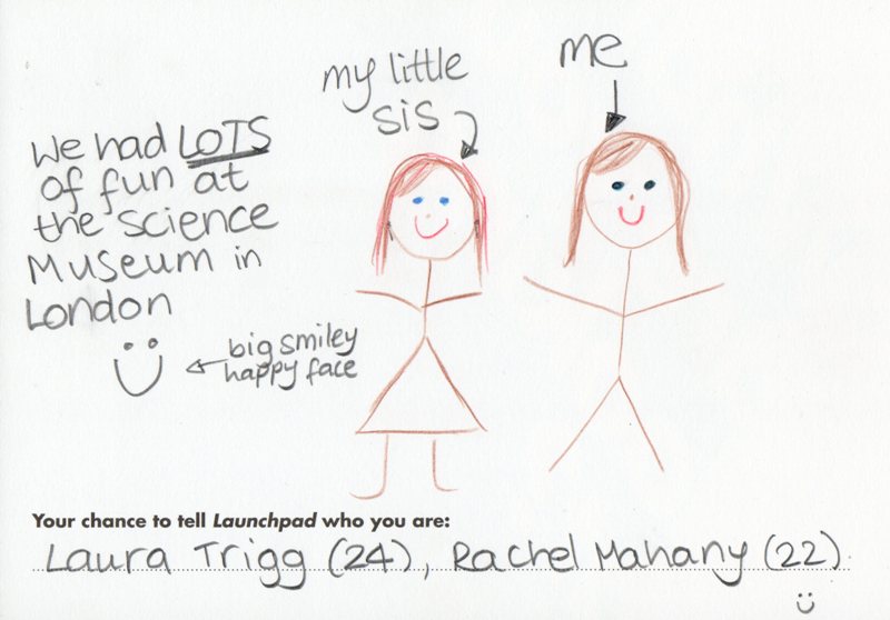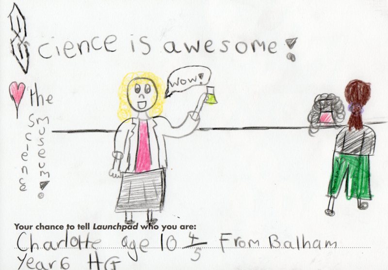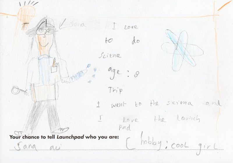 Here’s a selection of science-loving drawings created by our visitors when in the Launchpad gallery. Click on any image to see bigger pictures.