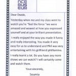 Explainer Dwain was thrilled that so many pupils enjoyed his show that he wrote back thanking the pupils of Loughborough school as well as updating them on his co-star from the Feel the Force show – Phil the Frog!