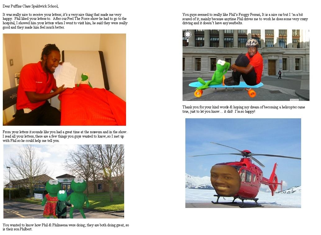 Explainer Dwain was so impressed that he thanked the pupils of Spaldwick school and answered queries about his co-star in the Feel the Force show – Phil the Frog!