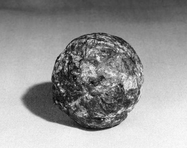 Whilst this may look like a rock or a big ball of old chewing gum, it’s actually a rubber ball. It was found in the grave of a Peruvian child, and is thought to date from 1590-1610. Rubber balls were invented by the Ancient Mesoamericans who used them in what was probably the first ever ball sport, a game similar to racquetball called the Mesoamerican Ballgame. This game was invented around 1600 BC, but could be even older. In some places, instead of a rubber ball, they would use a human head!